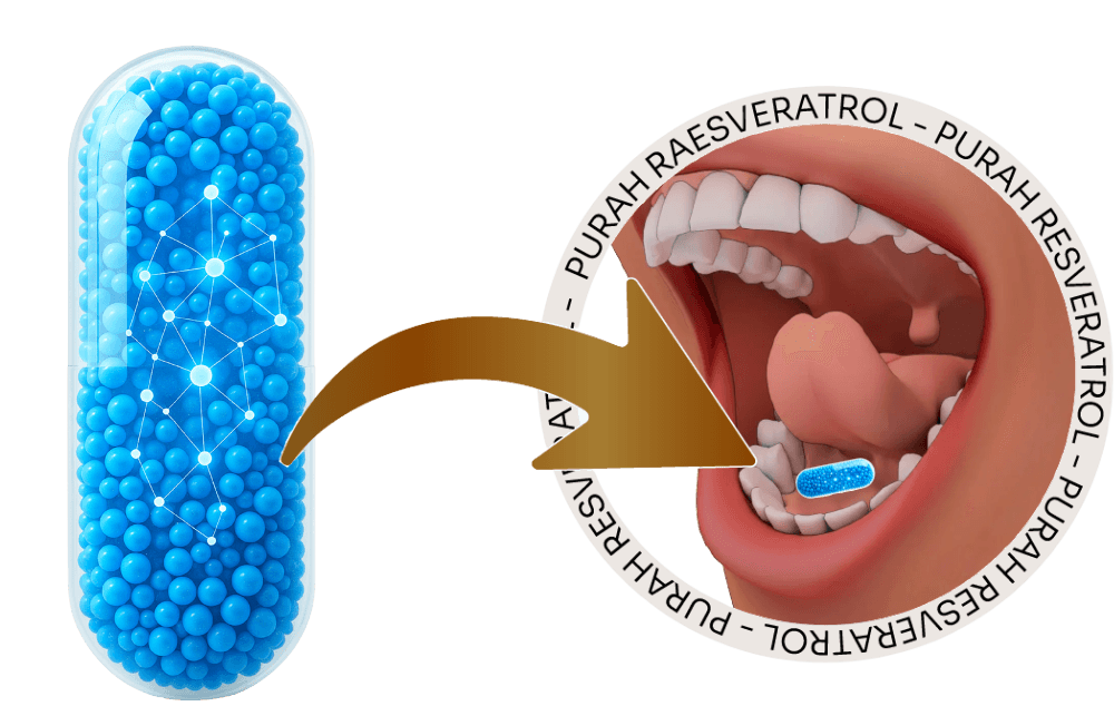 Menos de 1% do Trans-Resveratrol das cápsulas chega à sua corrente sanguínea, e o restante? Despediçado! Mas graças a PURAH: Oque era sonho, agora é absorvido diretamente no seu sangue - onde a juventude começa.